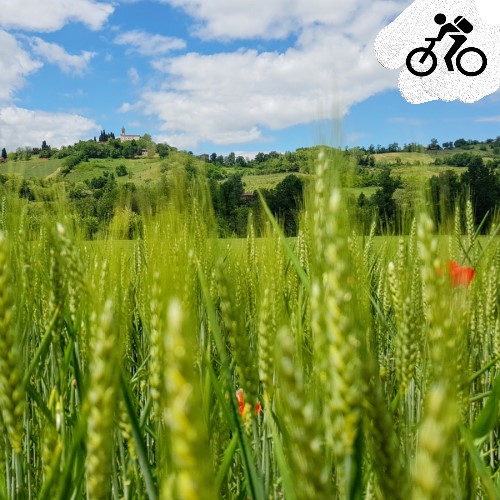 La salita si fa sentire, ma si pedala immersi nel verde e nella campagna.