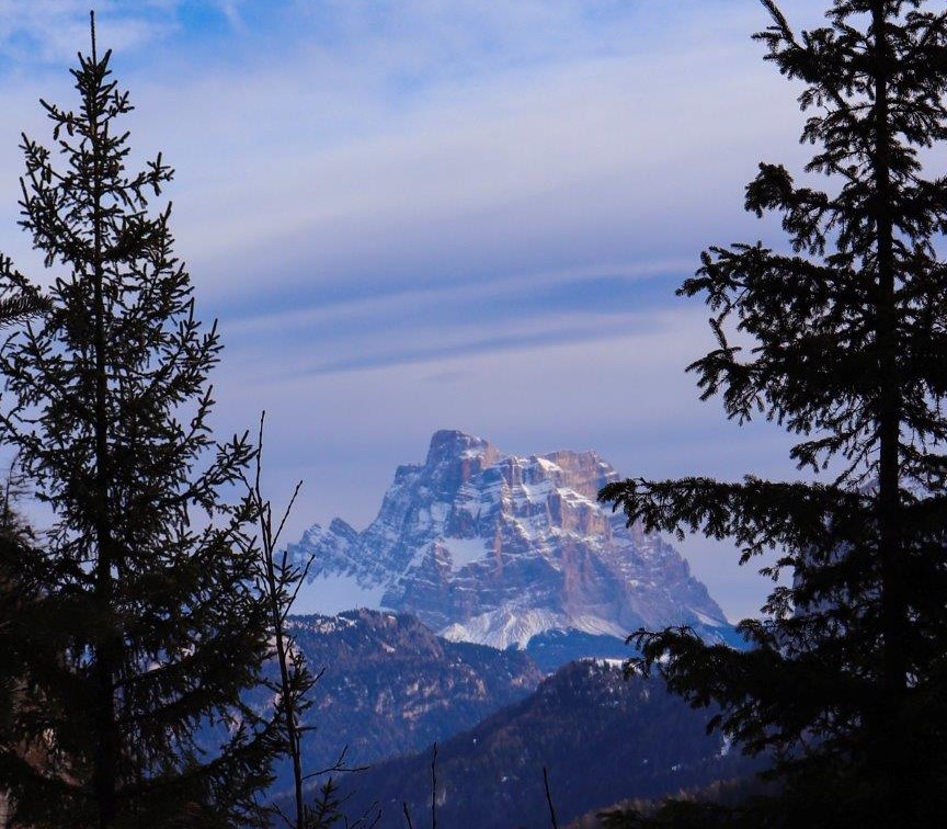 La vista si apre ed è stupefacente, il Monte Pelmo (el Caregon del Padreterno) è ben visibile tra le pendici di valle Ombretta.