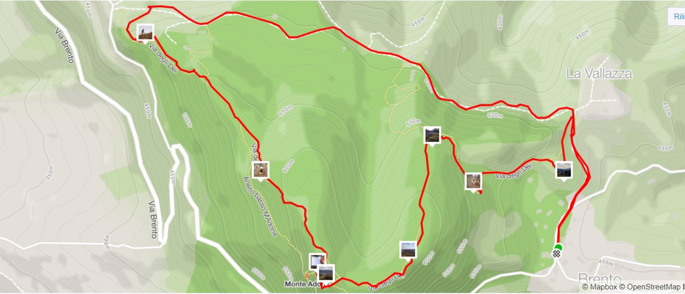Una volta arrivati in a Brento in Via Vallazza (Sentiero CAI 110) si incontra sulla sinistra l'imbocco del sentiero che ci porterà a fare l'anello di Monte Adone.