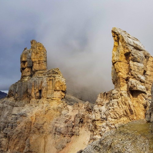 At the top of the fork lavaredo we are at 2454m and we are on the north, in the Trentino. From this position you will understand better why they are called "Three" peaks and offers a splendid view on many peaks as the Croda Rossa, Monte Paterno, Torre del Toblin, Marmolada and many others.