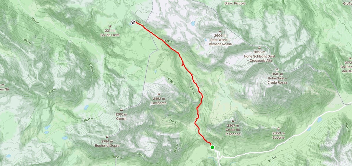 Il giro originale prevedeva di superare tramite il sentiero n.651 Punta Pettorina e poi prendere il sentiero N.66 poco prima di Forcella Valdritta e rientrare su sentiero 80 per rientrare alla macchina.